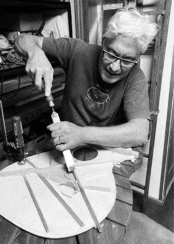 Guitars inspired by the big makers but hand-made using the best available mahogany, spruce, maple, African and Tasmanian blackwood, ebony, and handpicked electronics. Personalised decals.